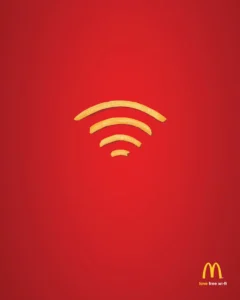 In this print ad, French fries double as a representation of Wi-Fi. It’s a clever, pun-like visual that ties back directly to the brand.